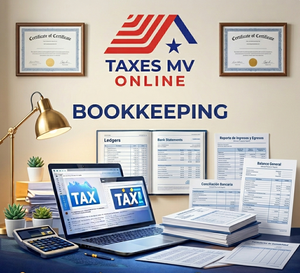 Tener una buena contabilidad es esencial para crecer tus finanzas. En TaxesMV ofrecemos servicios de Bookkeeping para que tengas tus ingresos, gastos y reportes al día. Nos encargamos de la parte contable para que tú te concentres en hacer crecer tu negocio.